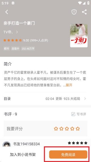 2、查看小说的详情内容后,直接点击下方的免费阅读。