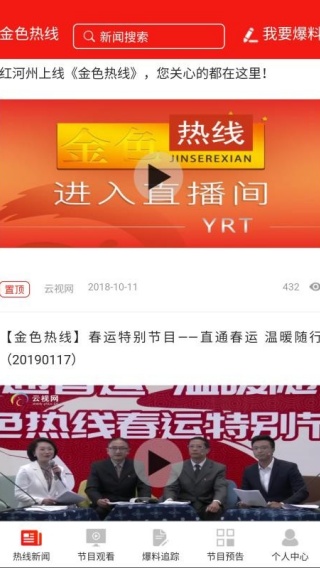 金色热线app是专门为云南用户打造的手机应用平台。它给用户推送超多热门新闻,能让大家在app上轻松阅读新闻,享受便捷的新闻阅读体验,轻松获取本地新闻。这里还有精彩电视节目可线上观看,通过节目直观了解本地热门新闻及事件动态。每位用户都是新闻传播者,遇到新鲜事能在app爆料分享,快来下载体验吧。