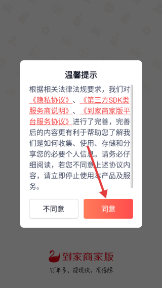 1、首次打开APP会弹出用户协议及隐私政策界面,需仔细阅读后点击同意才能继续使用APP,这一步是为了确保用户了解并同意平台使用个人信息的规则。
