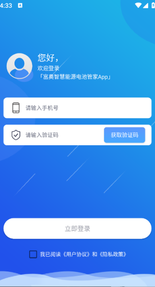 1. 下载并安装APP,点击‘同意’,即可进入登录页面;
