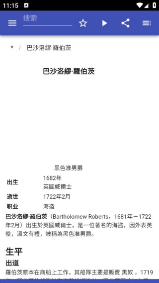 海盗app是一款超棒的软件,能详细介绍各个时期的海盗名人。像马丁佛罗比舍、比雨蓬斯、郑成功、黑胡子阿马罗帕戈等,这些人物来自世界各地不同国家。软件里每个人物都有具体的出生日期、地点,还有去世时间和地点,能让你深入学习海盗历史文化,了解全球海盗分布,知晓更多著名人物事迹,快来下载安装吧。
