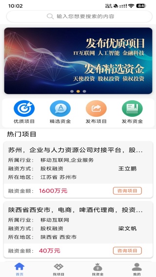 6、可以发布各种优质项目、天使投资、精选资金,完成所需融资信息对接;