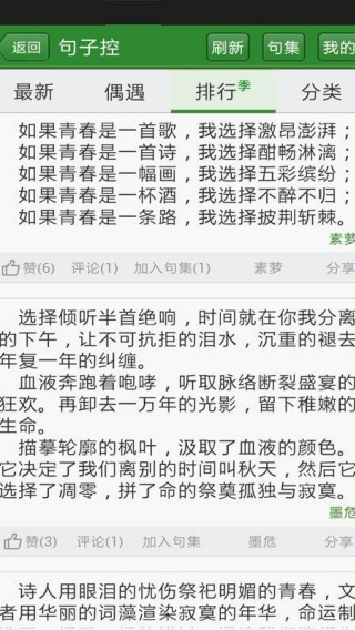 1、直接点击排行,就可以去阅读各种美文内容。