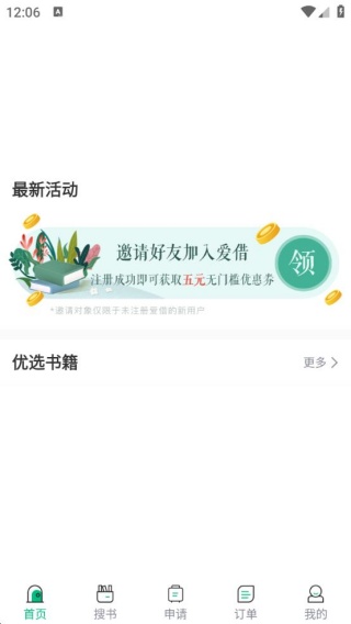 2、首页有优选书籍提供,还可以去参与到最新活动。