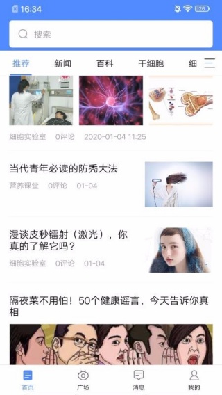 1、提供新闻、百科、干细胞等板块,自由选择,快速推荐;