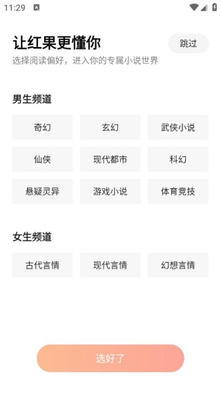 2、需要进行小说阅读偏好选择,方便更精准的推荐。