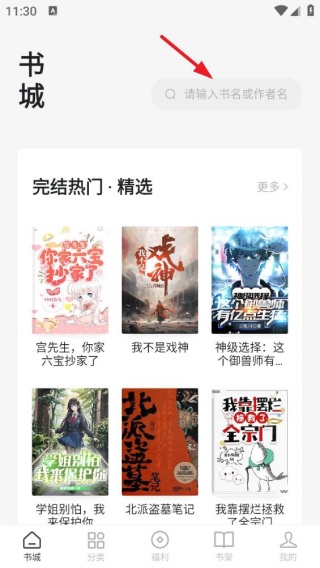3、进入到平台的书城界面,点击上方的搜索进入搜索界面。