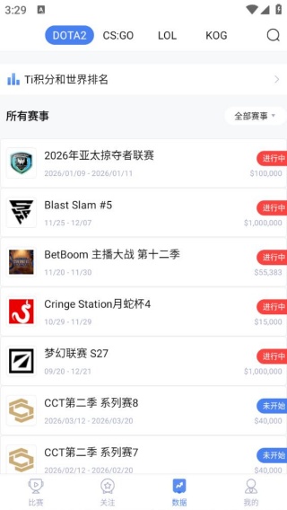 3、进入到数据板块,是可以获取不同战队的所有赛事数据内容。