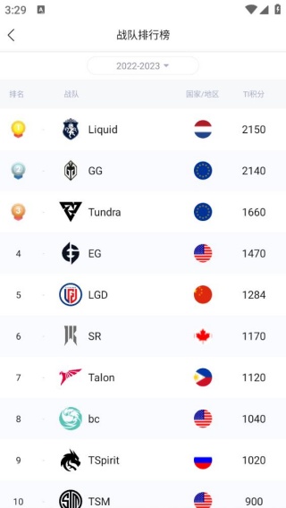 4、战队排行榜是可以根据自己的需求去查看,排行榜单更新及时。