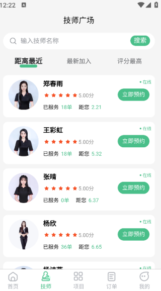 3. 点击页面下方的‘技师’,即可看到平台提供的所有技师信息;