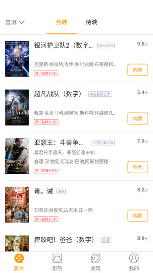 4、这里可以随时购买喜欢的电影票,随时下单。