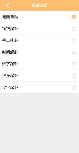 2、然后选择【起卦方式】,如电脑自动、铜钱起卦、汉字起卦等。