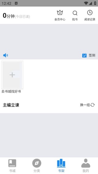 1、进入平台书架后,能够直接把自己喜爱的书籍添加至书架。