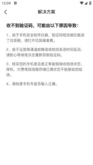 4、若点击“收不到验证码”,会提供详细的解决方案以助您解决问题。