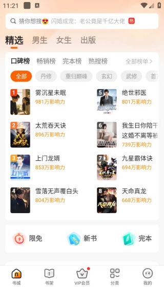 2、进入书城界面,有诸多精选小说可供选择,直接点击即可阅读。