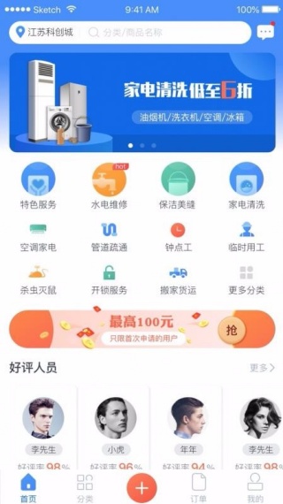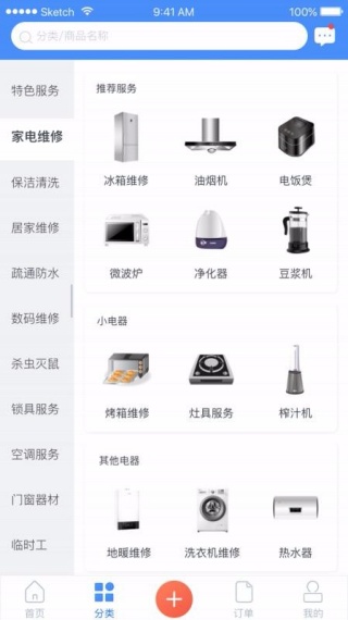 进入应用首页,点击开锁服务、水电维修等板块查找服务;