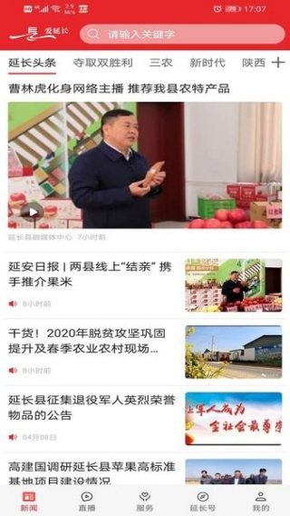 1、进入平台新闻界面,设有延长头条、新时代等栏目,资讯获取更为全面。