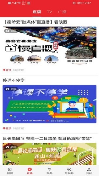2、点击直播,可直接参与视频直播,还能切换查看 tv 及广播内容。