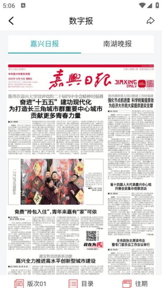 2、点击“读报纸”,能够进入电子报界面,阅读《嘉兴日报》《南湖晚报》。