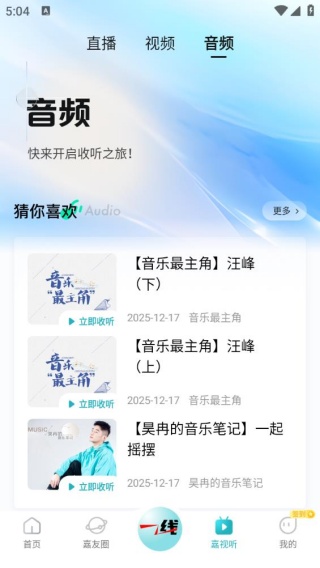 3、“听广播”板块提供各类音频内容,方便用户直接点击聆听。