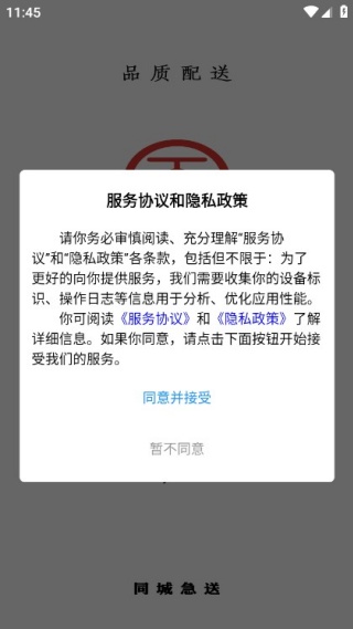 1、首次启动需阅读并确认服务协议及隐私政策