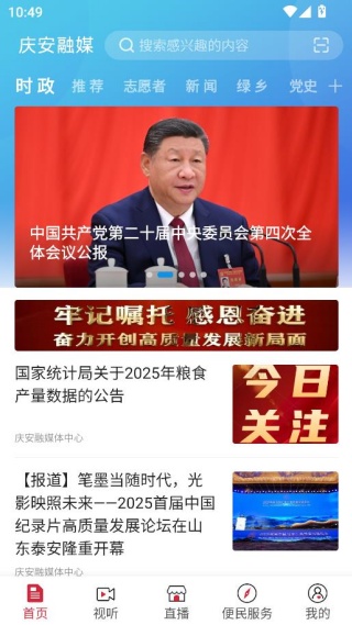 庆安融媒作为一款综合型信息服务平台,整合了新闻资讯、政务服务与民生应用三大核心模块,致力于为用户提供全方位的信息服务体验。平台覆盖党建动态、本地时事等多元内容,通过实时热点推送机制确保用户及时掌握周边动态,即使足不出户也能全面了解事件全貌。平台内置的党建专栏支持一键查阅学习,同时提供广播直播、短视频互动等创新传播形式,用户可通过多渠道获取信息。在服务层面,平台集成了文化教育、便民生活、交通出行等高频服务场景,构建起便捷的数字化服务生态。