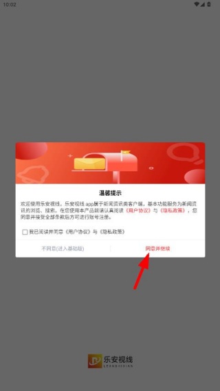 1、完成应用安装后启动,阅读用户协议提示框,点击"同意并继续"进入主界面