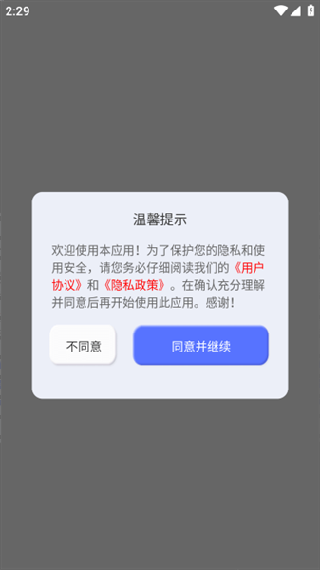 1.首次使用需先阅读并确认隐私政策条款,点击同意按钮继续操作。