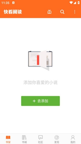 1、完成软件安装后启动,进入书架界面添加心仪小说作品
