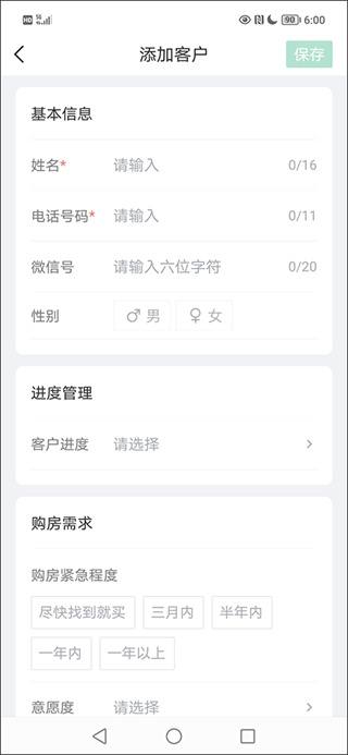 4、完整填写客户基础信息及带看记录后,点击右上角"确认保存"完成报备