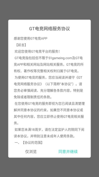 1、完成软件安装后启动,首先阅读网络服务协议,勾选同意选项后继续操作。