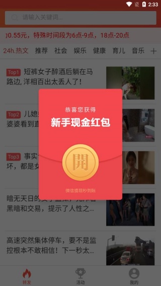 3、热门资讯板块实时更新,用户可直接点击阅读或转发分享