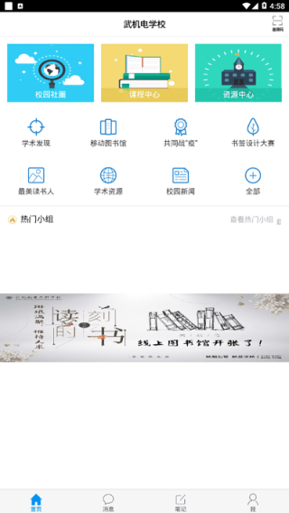 武机电学校是一款专为在校师生打造的校园资讯集成平台,该应用整合了校园内所有新闻动态,用户通过移动设备即可实时掌握学校最新资讯。平台为在校学生提供多元化服务模块,涵盖电子图书借阅、专业技能课程学习、学习资源下载等核心功能,用户可直接通过手机端访问图书馆馆藏资源,实现个性化书籍收藏管理,大幅提升学习效率。同时支持专业课程在线学习,助力学生快速提升职业技能水平,所有学习资源均可离线下载,满足碎片化学习需求。