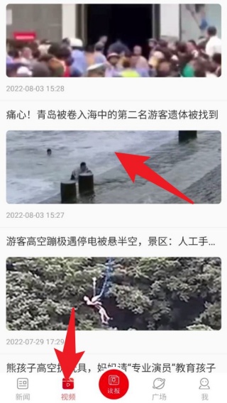 2、进入「视频」专区,浏览社会热点追踪、突发事件报道及精品纪录片等多媒体内容