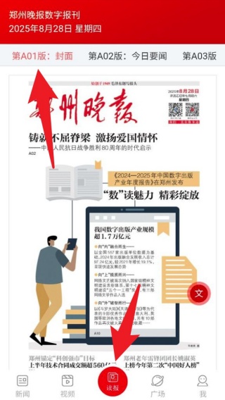 3、在「读报」板块查看当日《郑州晚报》电子版,实现移动端便捷阅读