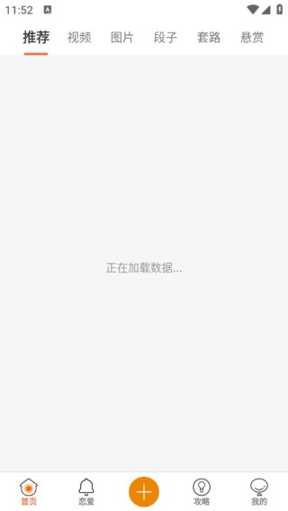 2、主界面设置推荐专区、视频频道、图片库、段子集锦及恋爱攻略五大分类入口