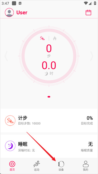 1、启动wofit应用程序,在主界面底部导航栏选择"设备"选项进入管理页面。