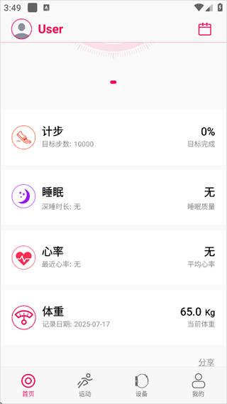 8、可设置个性化运动目标,实时统计目标完成进度及达标天数,激励持续运动