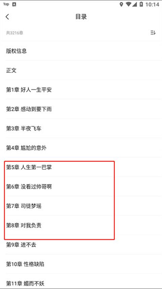 4、目录界面将显示完整章节列表,已缓存章节显示为深色标识,未缓存章节显示为浅色标识
