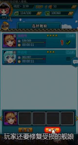 3、解锁舰娘,组建队伍,同时也要修复受损的舰娘,从而提高她们的战斗力。