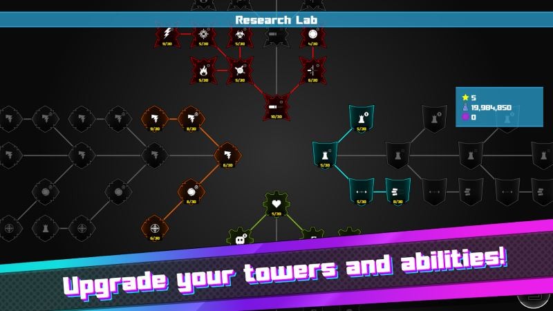 5.通过研究实验室你能不断的升级自己的塔,让自己有能力和实力在战斗中接替更强大的敌人。