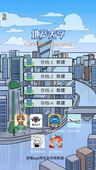 1.进入游戏后新建存档,即可开始你的地产大亨挑战。