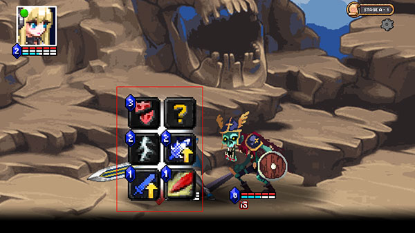 1、对战敌人,可以点击远程攻击角色头像,选择下拉所需技能。