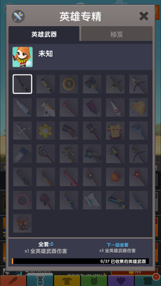 2、英雄专精里有众多武器和秘笈可供收集。