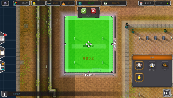 2、从地基开始利用发展所需的资源建造你需要的建筑,并不断扩大自己监狱的规模;