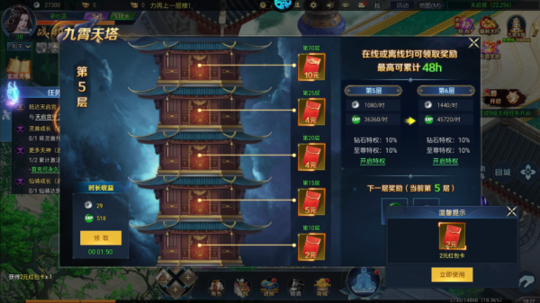 3. 秘境顿悟:每日首次通关“雷峰塔幻境”必得修为金丹;