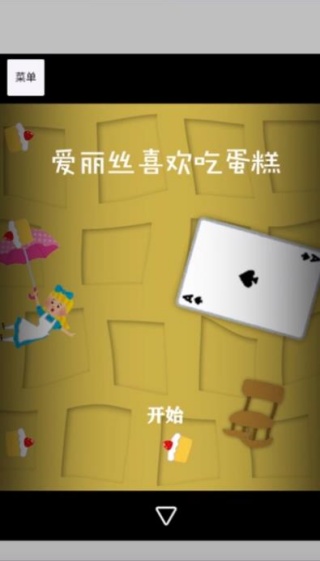 1、点击 “开始” 按钮进入游戏,游戏围绕爱丽丝收集蛋糕展开,需在后续关卡中专注于蛋糕的收集。
