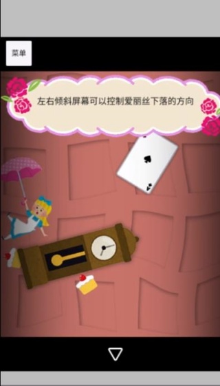 4、牢记操作提示,在游戏中灵活倾斜屏幕,引导爱丽丝避开时钟、扑克牌等障碍物,精准收集蛋糕,确保每一次移动都能有效推进游戏进度。
