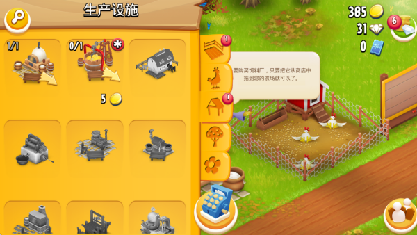 2.进入农场后玩家可以解锁建造各种设施,帮助你加工生产各种农产品进行售卖。