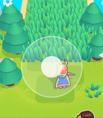 2、白色半透明区域标识自动攻击范围,结合虚拟摇杆控制实现战斗与探索的无缝切换。